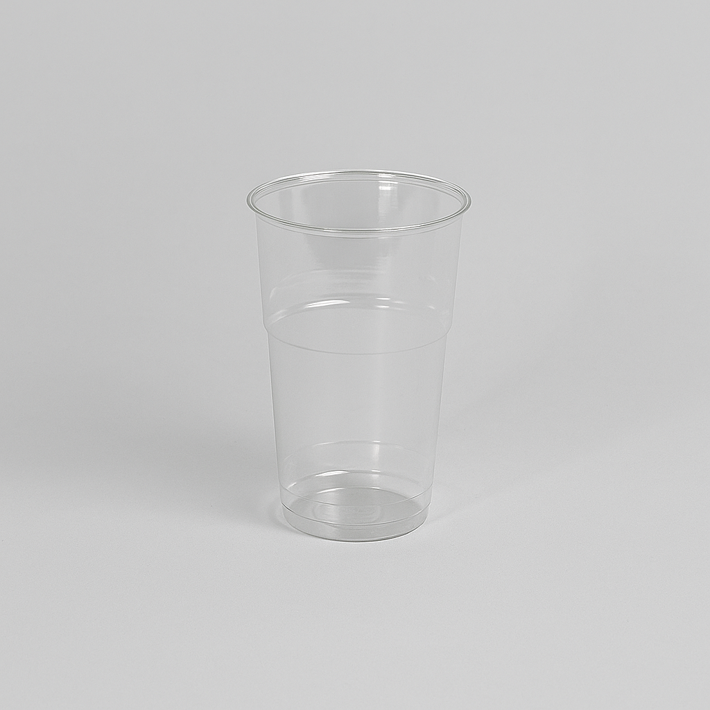 Bicchieri Kristall 350 cc in r-PET trasparente, realizzati con almeno il 50 % di materiale post-consumer per ridurre il ricorso a polimeri vergini senza sacrificare la brillantezza cristallina che contraddistingue la linea. Lo spessore della parete, calibro 0,65 mm, assicura resistenza a schiacciamento e torsione in contesti ad alto flusso, limitando rotture su piste da ballo, beach bar e festival. Il bordo arrotolato uniforme da 1,2 mm offre comfort labiale e stabilità per coperchi standard dome o piatti, mentre l’anello di rinforzo interno funge da tacchetta di servizio a 0,35 l per versare in maniera rapida e accurata cocktail o birra. Il r-PET sopporta range termico 5 °C–70 °C, quindi idoneo a bevande fredde, granite e preparazioni tiepide come vin brûlé, senza rilasciare odori. Il fondo zigrinato antiscivolo aderisce a superfici bagnate evitando slittamenti su bancone inox. Dopo l’uso il bicchiere entra nel circuito di riciclo della plastica, favorendo un ciclo chiuso che abbatte l’impronta di CO₂.