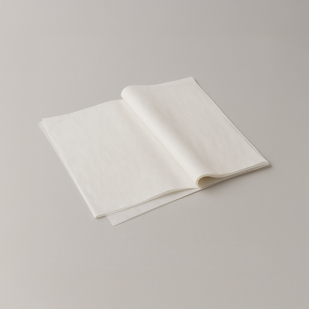 Carta oleata pergamino semitrasparente 35 g/m², formato 27 × 50 cm, è utilizzata come sovraincarto per croissant, focacce e prodotti da forno, resiste a forno 220 °C per 15 minuti e a congelamento −18 °C senza perdita di integrità. Il pH neutro previene alterazioni aromatiche; la traslucenza consente la visibilità del prodotto.