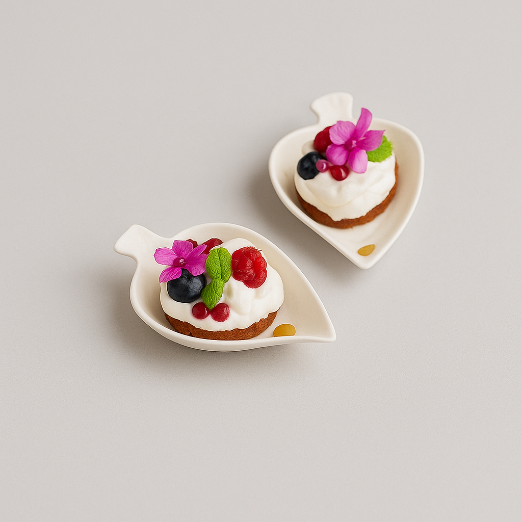Finger food modello foglia in polpa di cellulosa, nato per presentare tartare di pesce, antipasti vegetariani e tanto altro con un tocco di stile. La sagoma affusolata di 12 cm esalta la direzionalità del piatto, guidando l’occhio dal picciolo alla punta e rendendo le foto food più dinamiche. La polpa di cellulosa resiste a 100 °C/10 min in forno ed è idoneo all' utilizzo in microonde (max 3 min a 700 w).