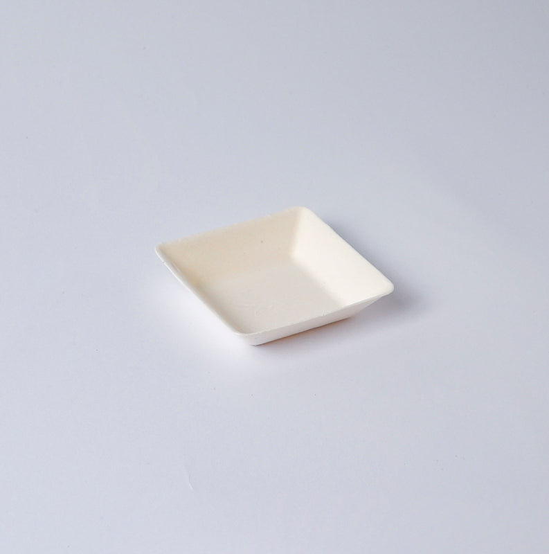Contenitore finger food modello plat 7 × 7 cm h 2 in fibra di cellulosa pressata, biodegradabile e compostabile secondo normativa EN 13432. La struttura leggera e rigida isola termicamente il contenuto, consentendo servizio di antipasti caldi in forno a 100 °C per 10 minuti o in microonde a 700 W per 3 minuti, oltre a dessert freddi o gelatine. Il bordo inclinato funge da cornice che valorizza colori e consistenze, migliorando l’esperienza visiva del cliente.