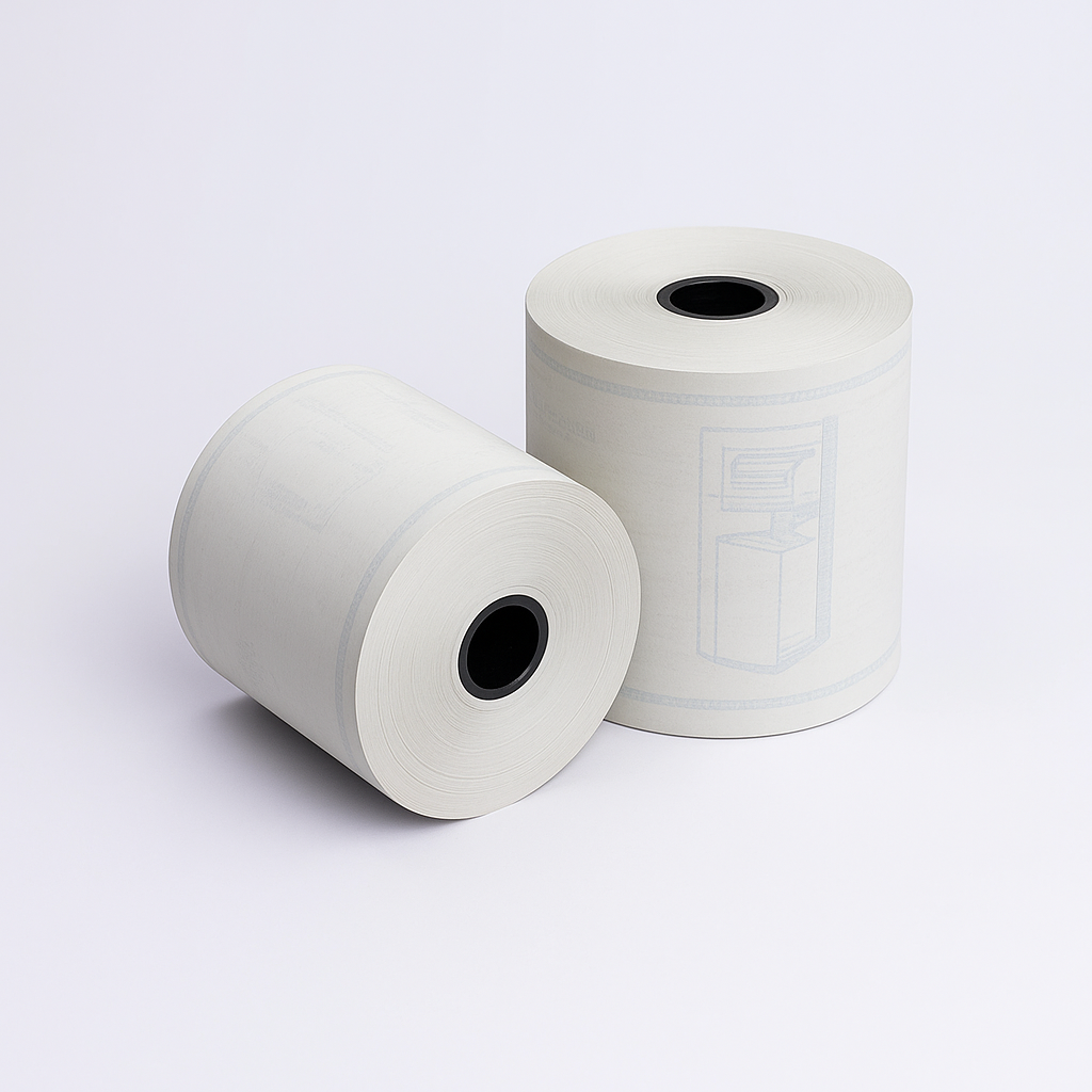 Rotoli termici cassa 80 mm × 80 m in carta bisphenol-free 55 g/m², adatti a registratori di cassa e stampanti fiscali. Il nucleo rinforzato da 12 mm mantiene forma cilindrica sotto pressione, garantendo alimentazione costante anche in stampanti ad alta velocità 250 mm/s.