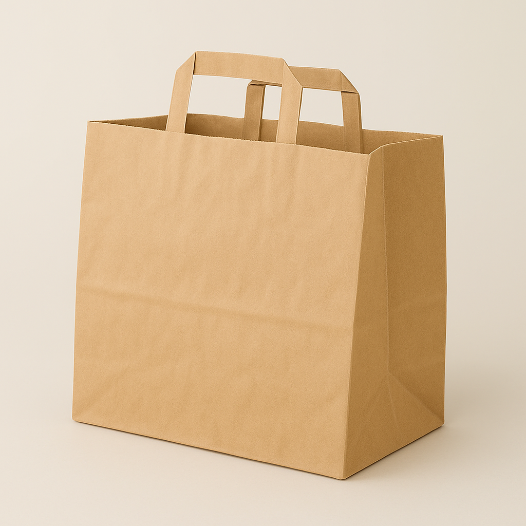 Prodotti in carta kraft avana da 90g/m², questi sacchetti take-away con base ampia sono studiati per trasportare in modo sicuro bowl, box per panini e vaschette gastro. Il soffietto laterale aumenta lo spazio interno, offrendo stabilità orizzontale al packaging alimentare e riducendo il rischio di ribaltamenti durante il servizio di consegna.