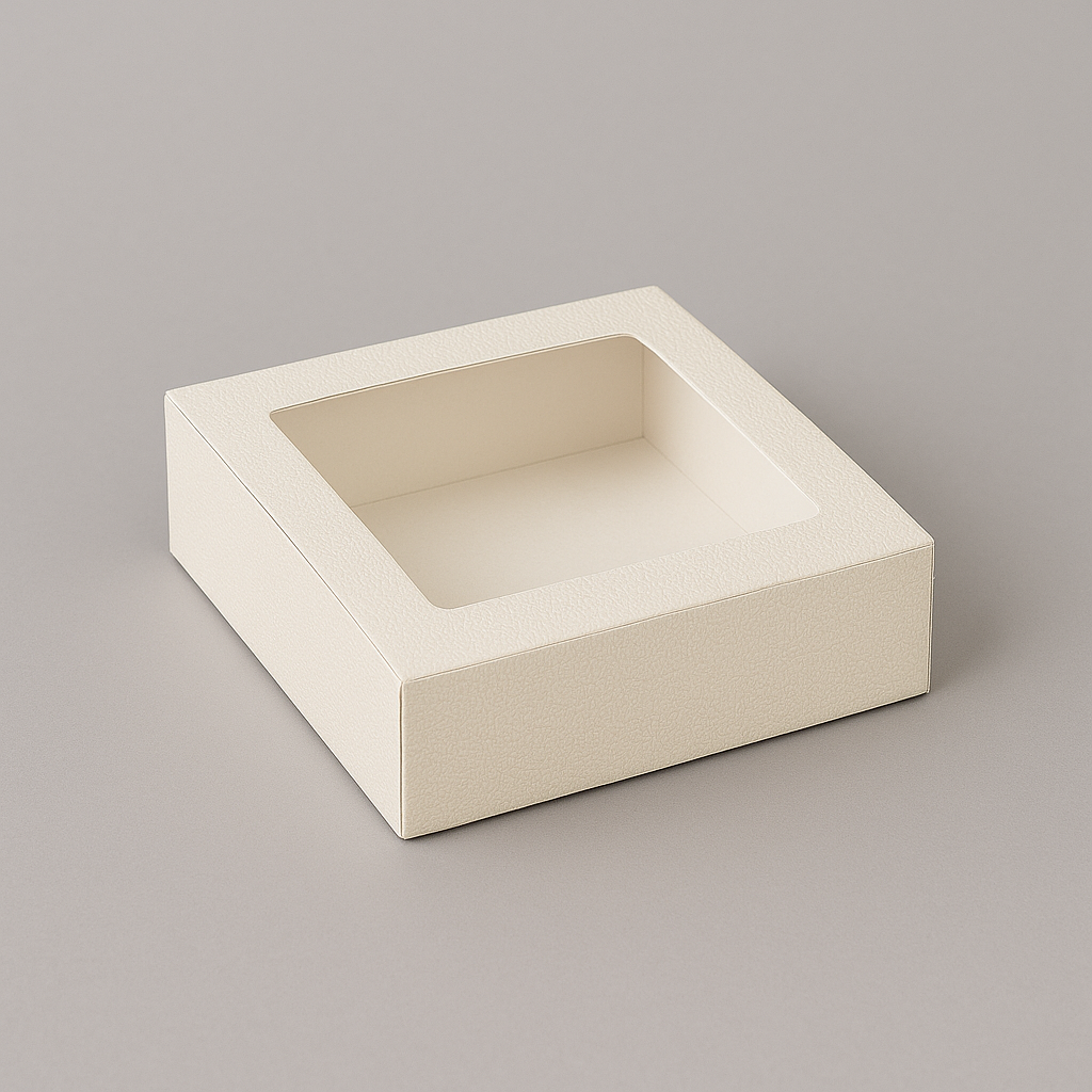 La scatola modello "Finestra" è ideale per confezionare torte, crostate, pastiere e altri dolci. Realizzata in cartoncino bianco alimentare con una trama esterna effetto "tartarugato" che conferisce un tocco di eleganza e raffinatezza. La finestra trasparente valorizza il contenuto, rendendolo ancora più invitante. Disponibile in tre misure per adattarsi a ogni esigenza.